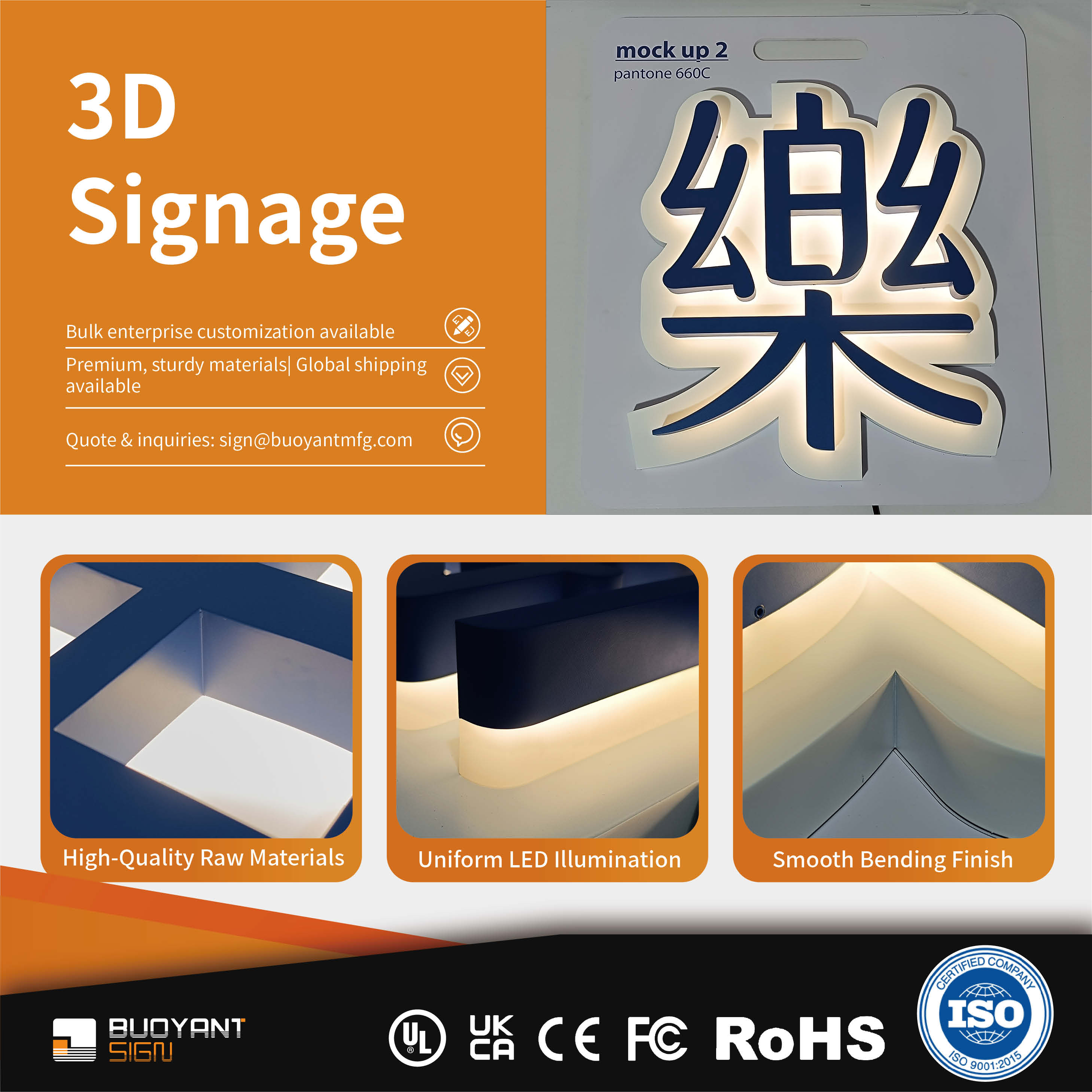 Our 3D Signage are meticulously crafted from premium materials such as acrylic, stainless steel, PVC sheets, and metallic paints. We possess a mature large-scale production system and an efficient delivery mechanism. Offering comprehensive personalized customization, we allow flexible adjustments for font styles, size specifications, and color combinations, fully meeting the bulk purchasing needs of diverse clients. These letters achieve a perfect balance of visual impact, durability, and installation convenience across various scenarios, including: