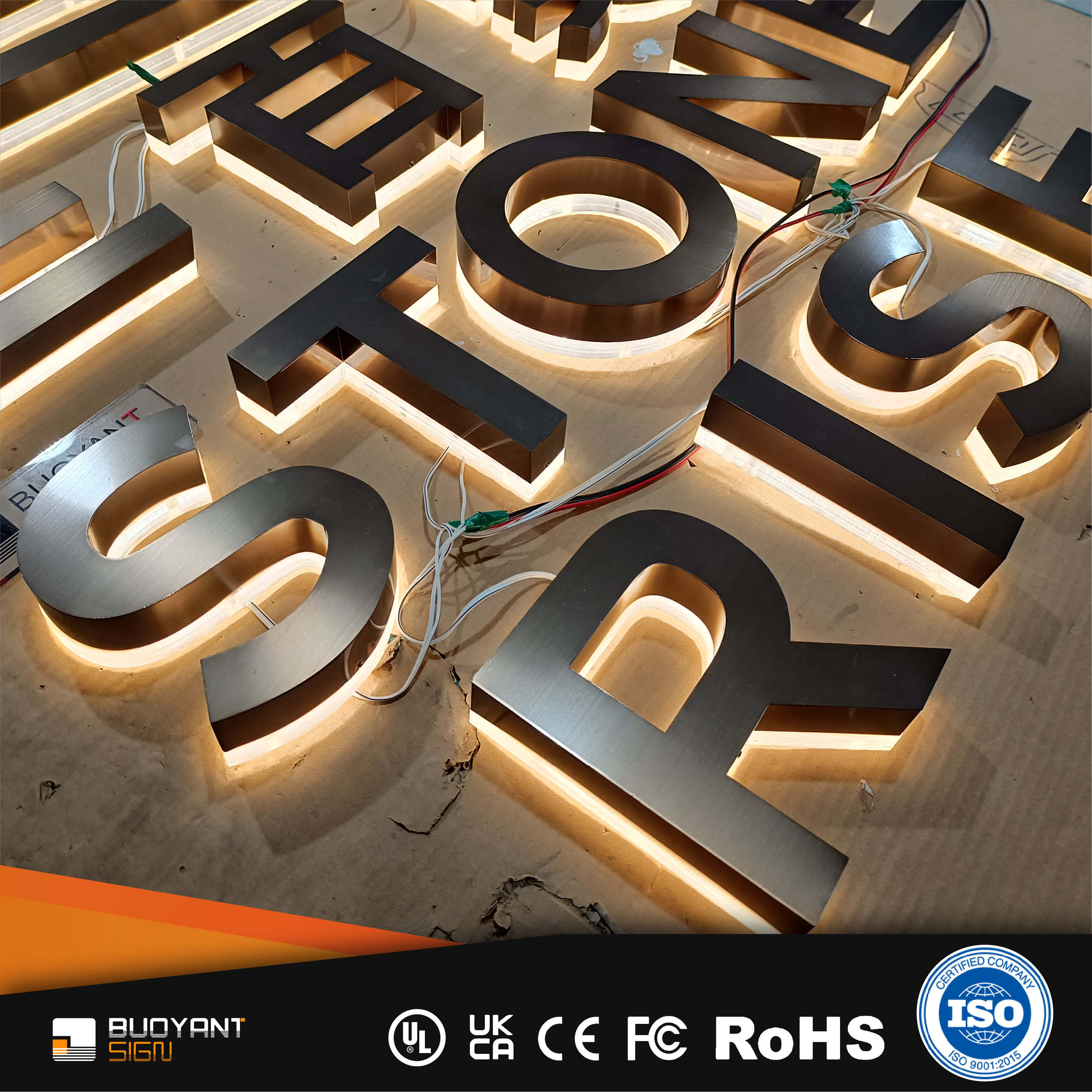 High-end Gold MirrorStainless Steel 3D Backlit Signs Custom for Brands (A3DIS-B43gold)