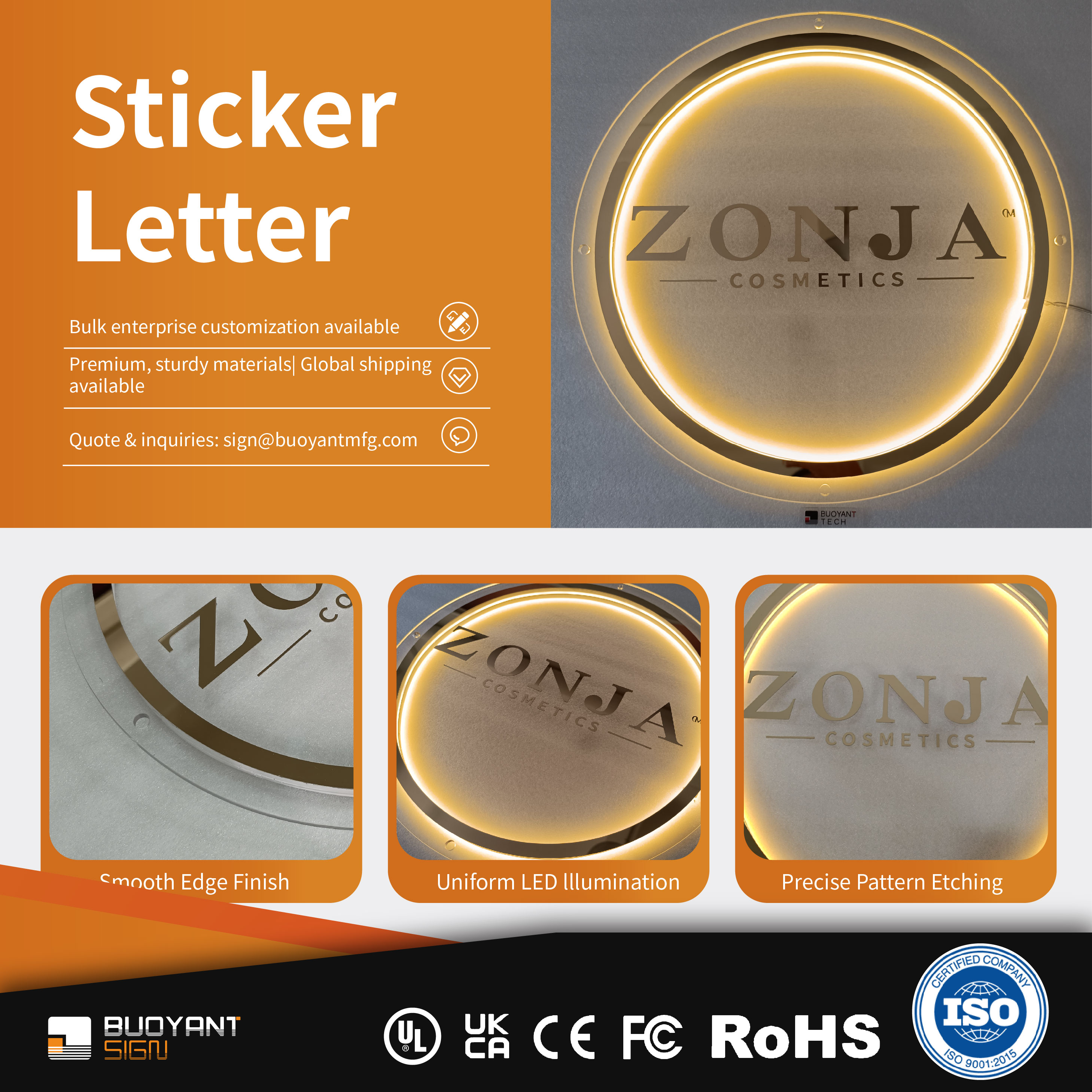 Our Sticker Letter/Embossed Letter are meticulously crafted from premium materials, including high-quality acrylic, high-brightness LED modules, and anodized metal backplanes. Leveraging advanced processing techniques and precise assembly methods, we have established a mature and efficient large-scale production system, ensuring swift order fulfillment. We offer multi-dimensional personalized customization, allowing flexible design options for font styles, sizes, lighting colors, and installation methods. This comprehensively meets the bulk purchasing needs of diverse customers, achieving a harmonious balance of visual refinement, durability, and installation convenience across various scenarios. Applicable scenarios include: