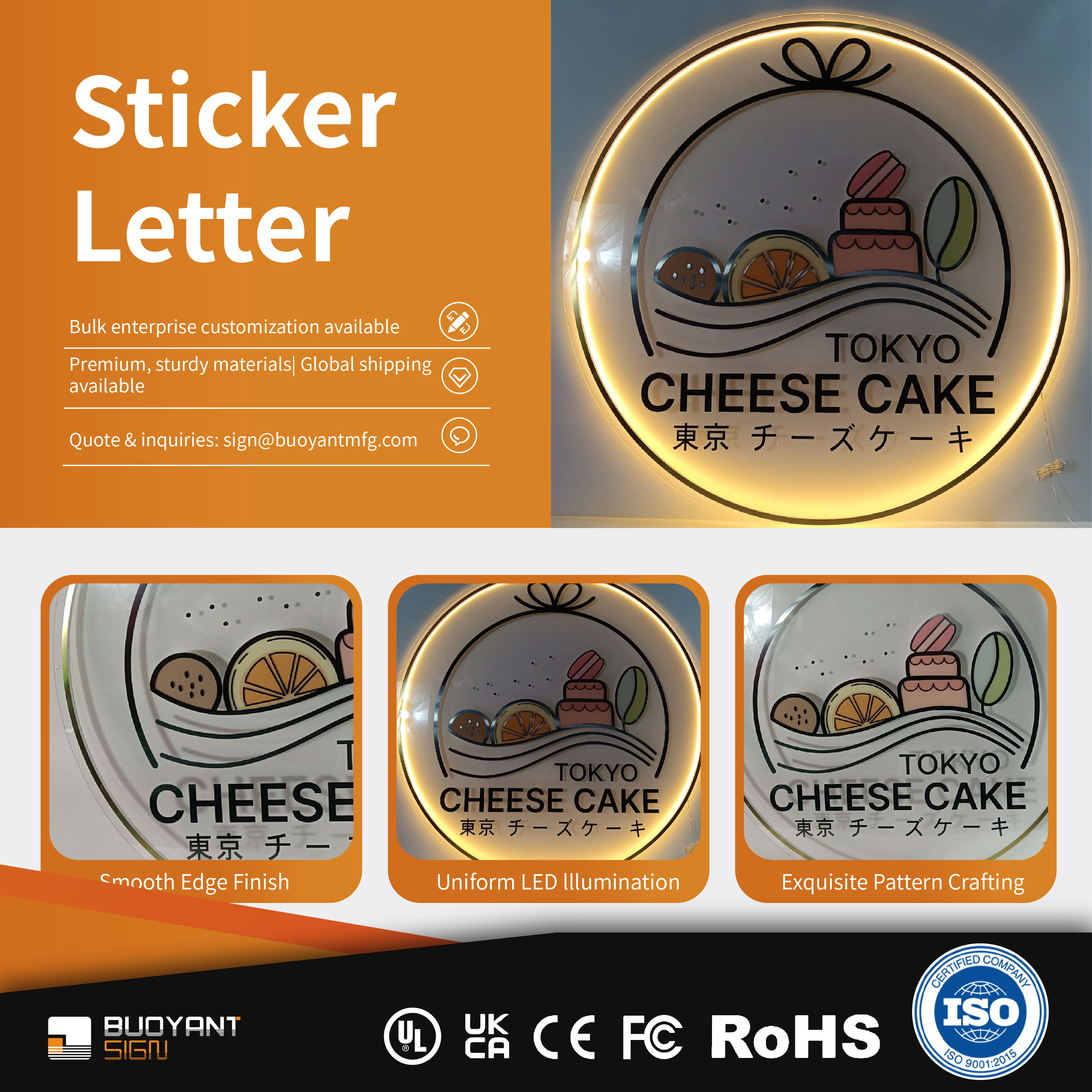 Our Sticker Letter/Embossed Letter are meticulously crafted from premium materials, including high-quality acrylic, high-brightness LED modules, and anodized metal backplanes. Leveraging advanced processing techniques and precise assembly methods, we have established a mature and efficient large-scale production system, ensuring swift order fulfillment. We offer multi-dimensional personalized customization, allowing flexible design options for font styles, sizes, lighting colors, and installation methods. This comprehensively meets the bulk purchasing needs of diverse customers, achieving a harmonious balance of visual refinement, durability, and installation convenience across various scenarios. Applicable scenarios include: