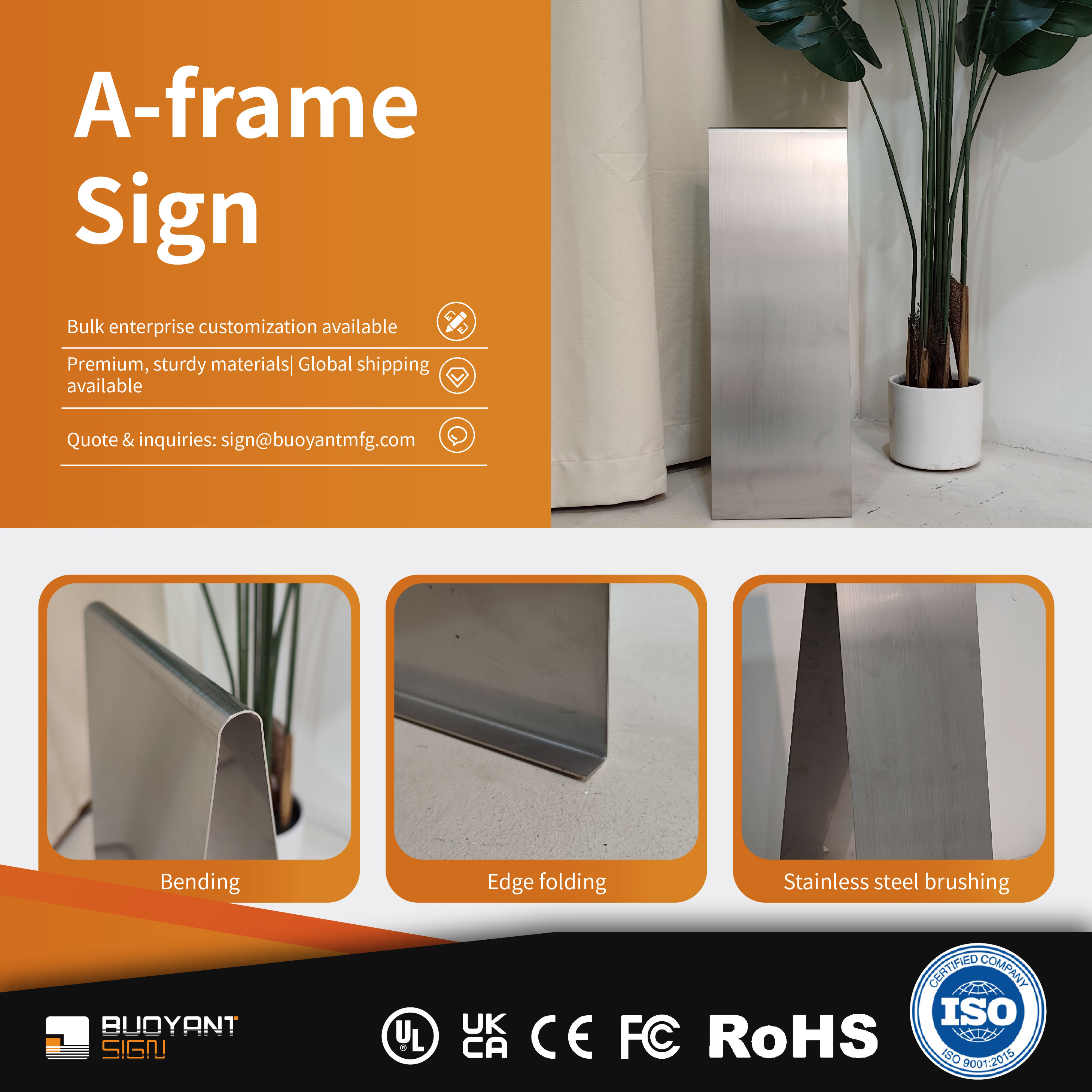 Our A-frame Signs are meticulously crafted from premium materials like stainless steel, galvanized sheet, and aluminum profiles,