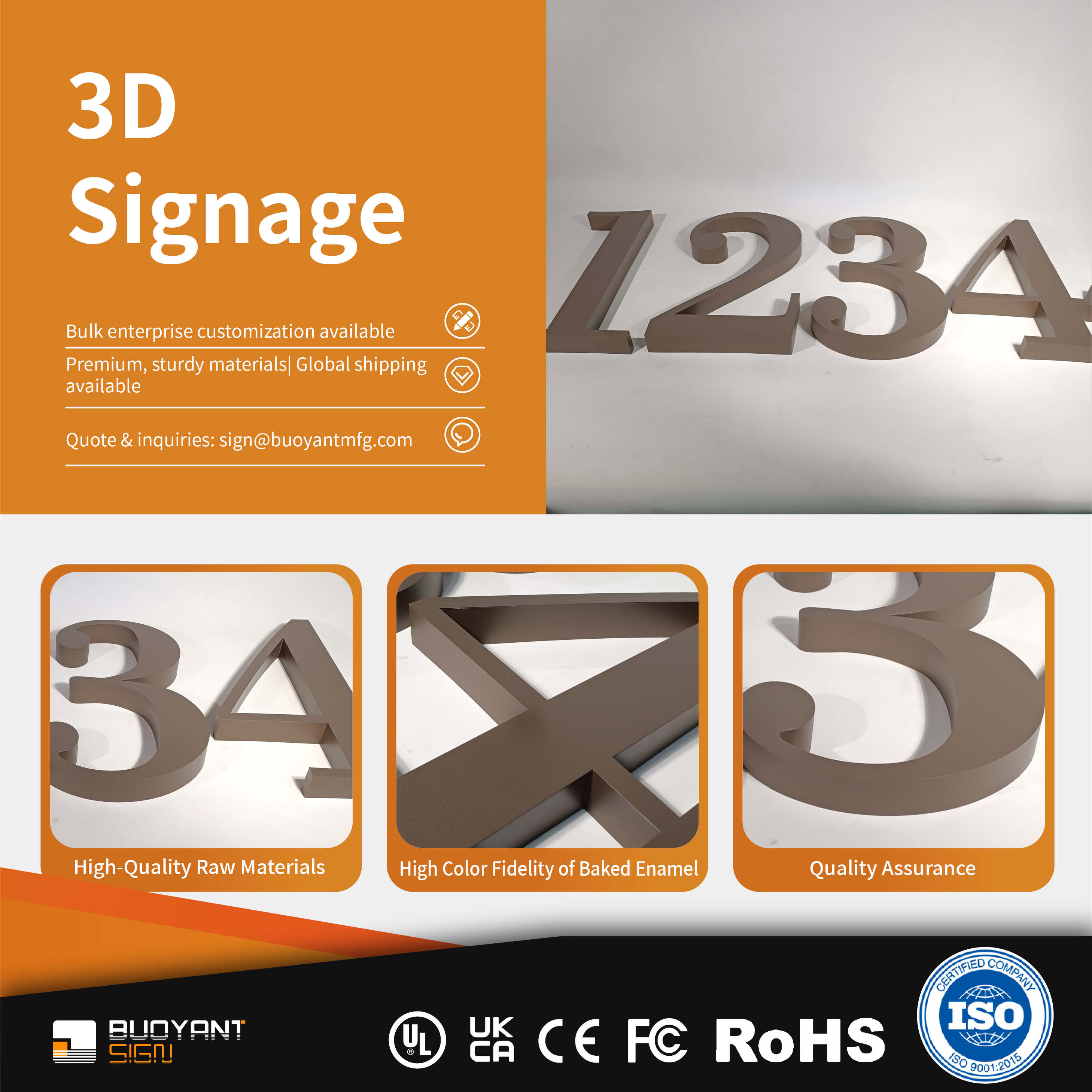 our standardized production lines and supply chain management system guarantee stable delivery of bulk 3D SIGN orders.