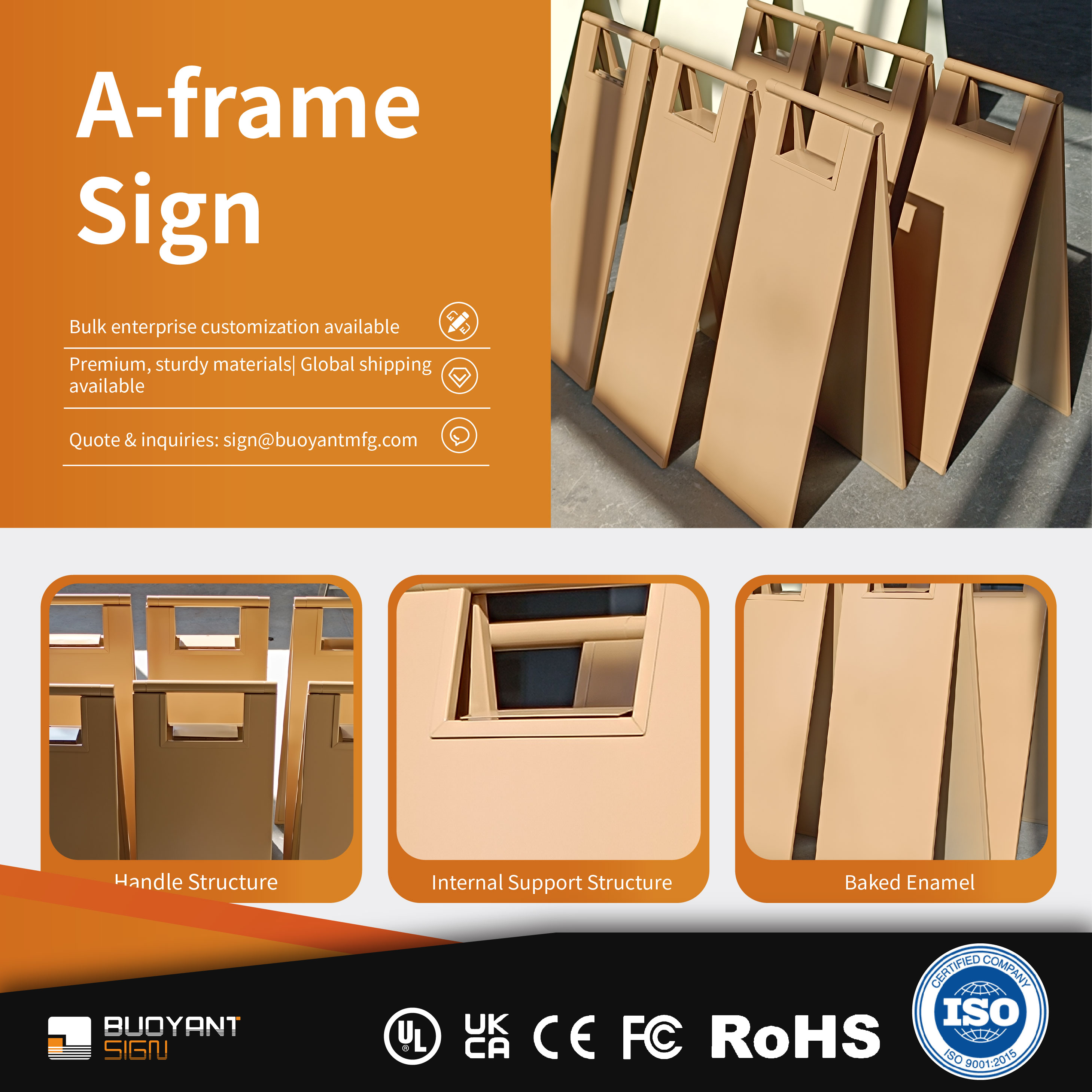 BUOYANT SIGN: Custom Foldable A-Boards for Chain Businesses. Stable foldable structure, minimalist style fits multiple scenarios. Bulk customization supported, consistent quality to elevate brand image. Source manufacturer, offers custom solutions & global shipping. Inquiry: sign@buoyantmfg.com
