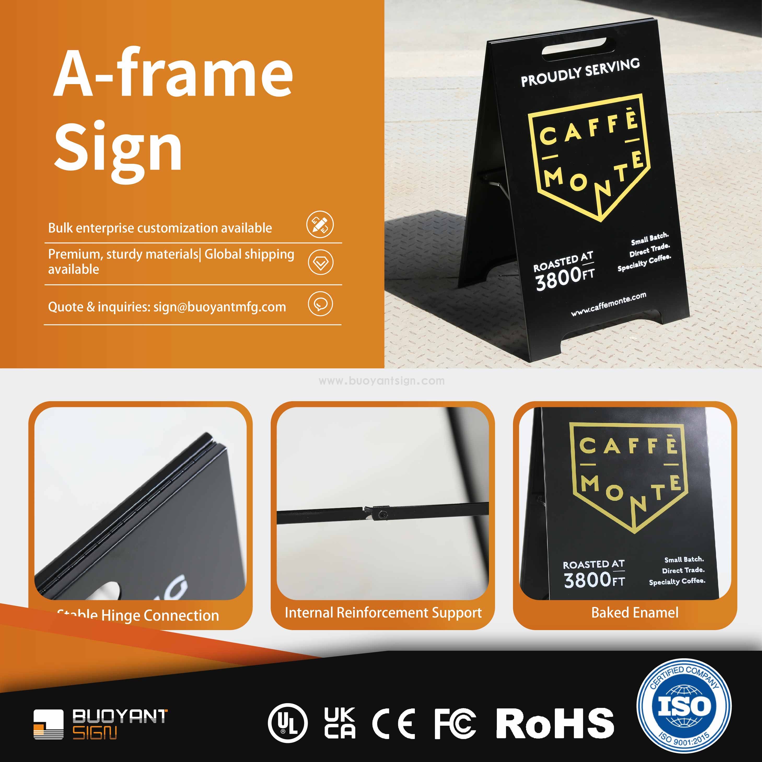 Our A-frame Signs are meticulously crafted from premium materials like stainless steel, galvanized sheet, and aluminum profiles,