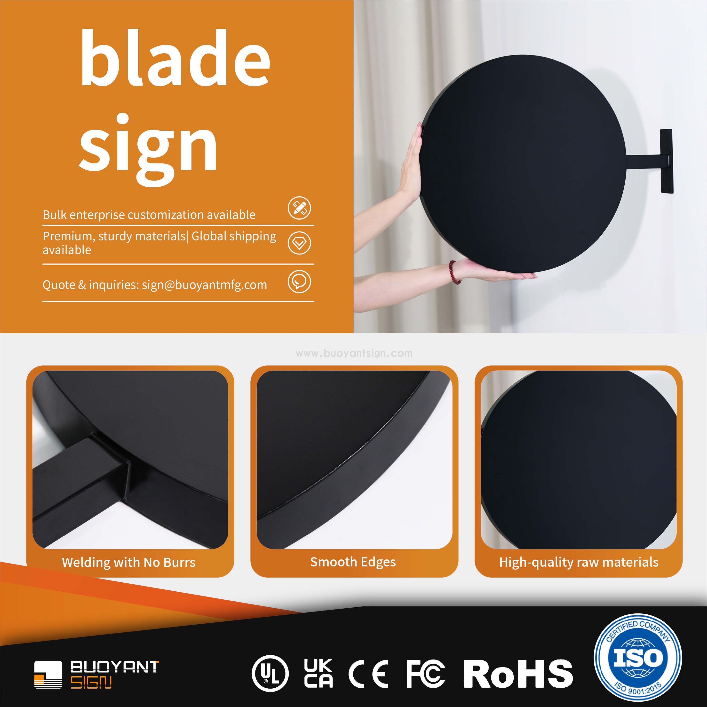 Round Stainless Steel Blade Signs with Single Mounting Foot (Black Minimalist) (AS-BS-rou83)