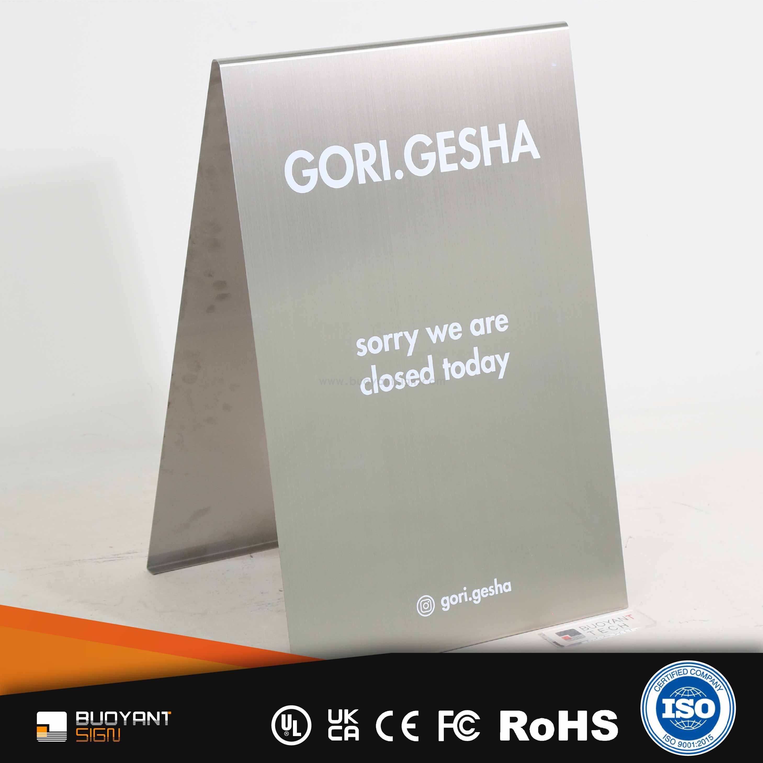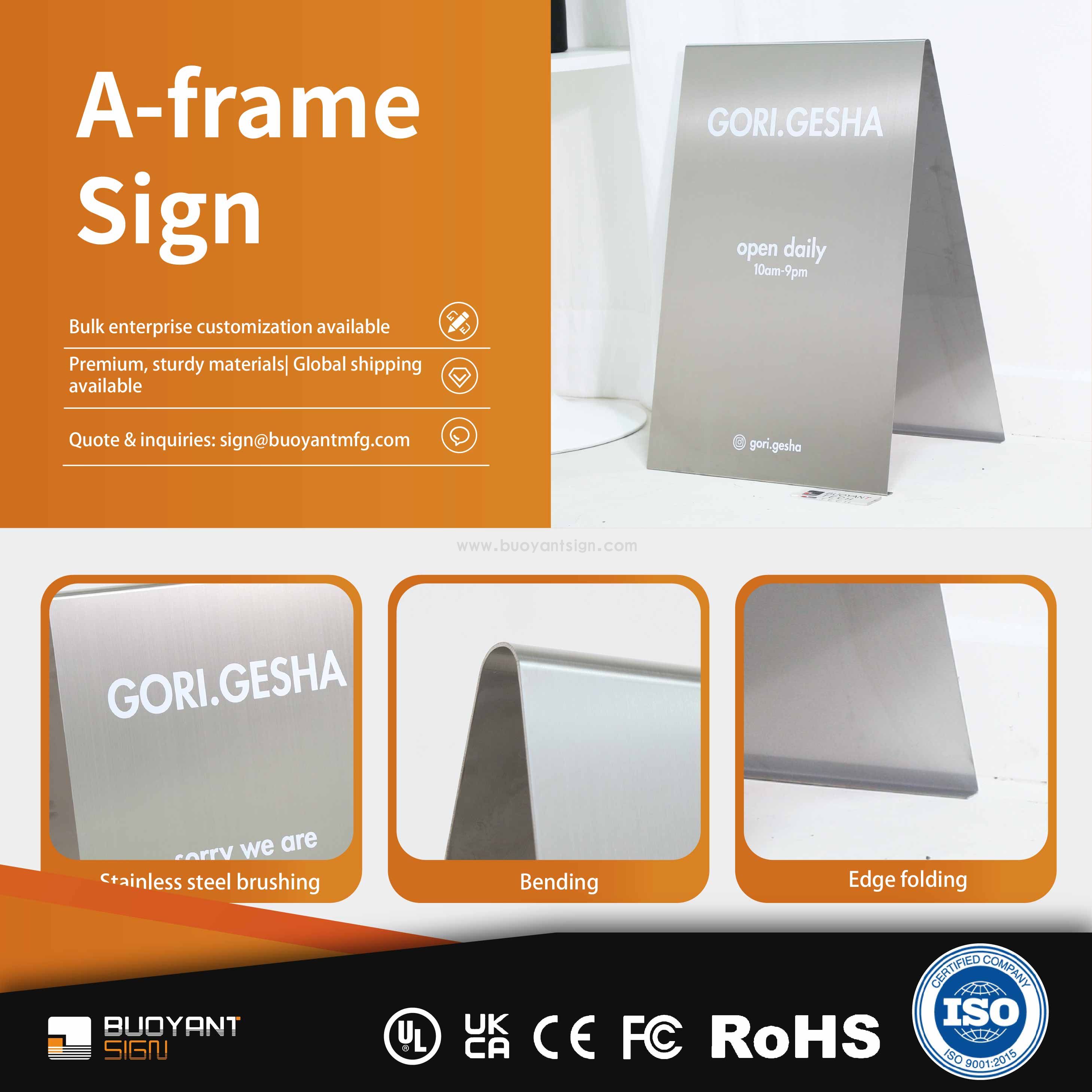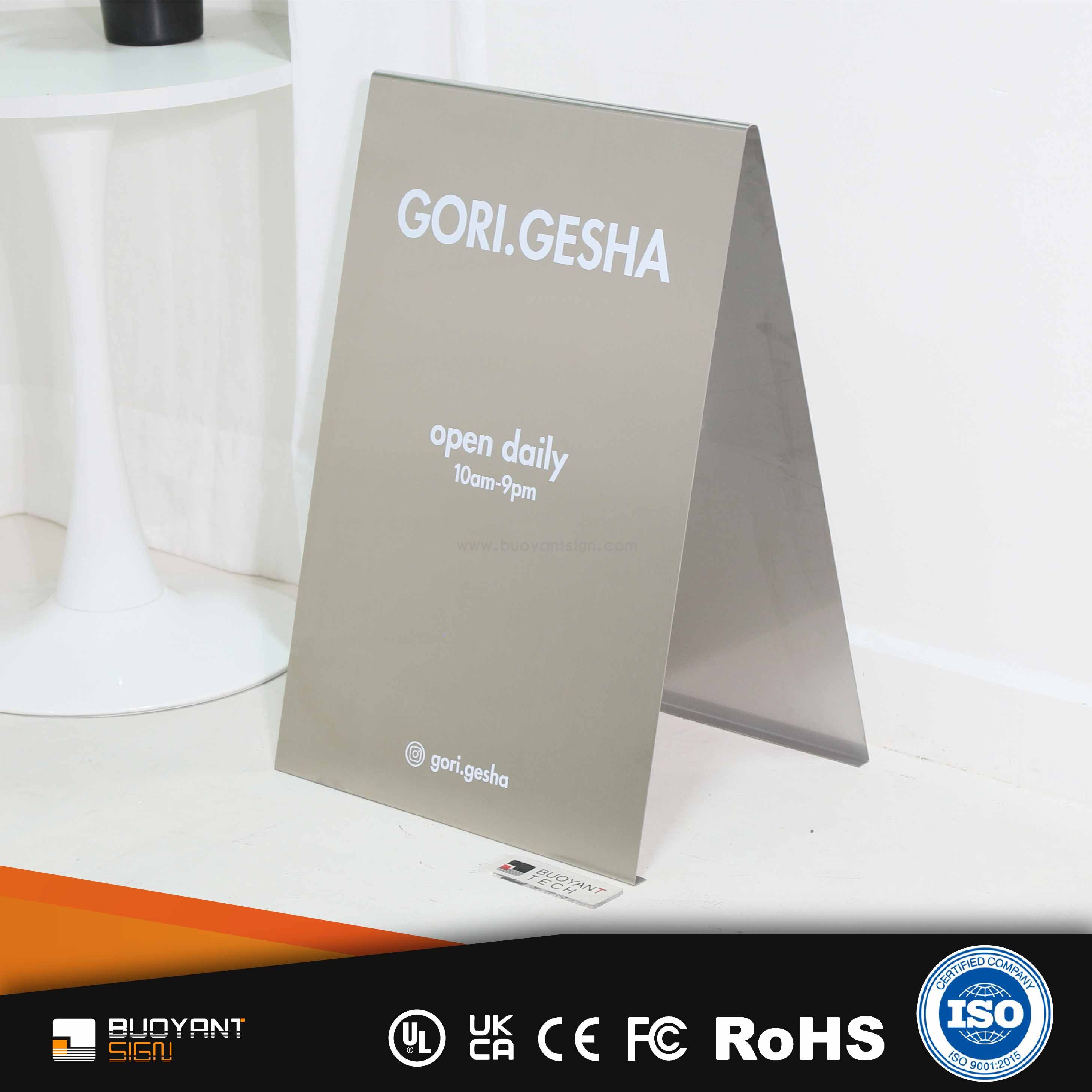 Specialized in manufacturing brushed stainless steel A-frame signs for F&B Retailer(AAFSSS-bssopb35)